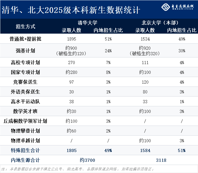 2025年,清北两校首次明确公开破格生招生计划。北大320人(含医学部10人),清华120人。