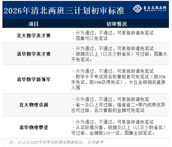 北大数学英才班几乎只有排名靠前的金牌才能过审,清华数学英才班、物理攀登计划的过审标准,大致也卡在银牌,过审的省奖很少,北大物理卓越计划、清华数学新领军对学生的竞赛潜质要求也不低。
