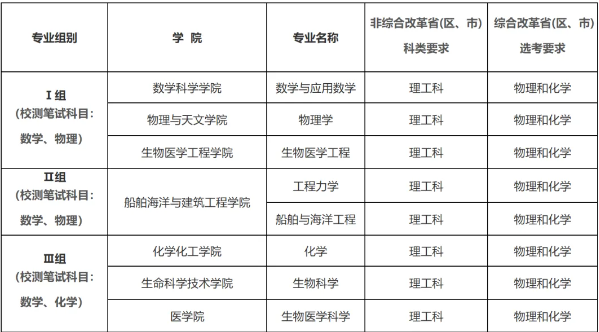 上海交通大学2025强基招生专业:数学与应用数学、物理学、生物医学工程、工程力学、船舶与海洋工程、化学、生物科学、生物医学科学。
