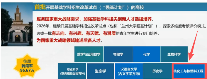 2026年兰州大学招生宣讲会中,新增一个专业--核化工与核燃料工程,目前兰州大学会有9个强基计划专业进行招生,未来招生计划数可能也会增加,我们拭目以待!