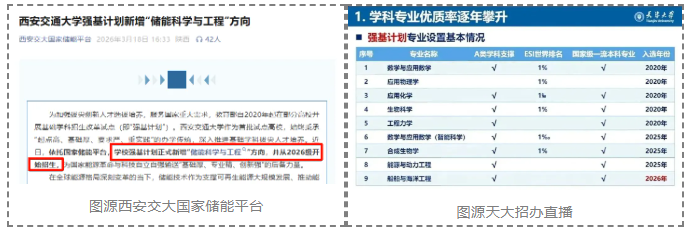 另外,特别是2026年西安交通大学新增的储能科学与工程方向和天津大学新增的船舶与海洋工程专业落地强基。