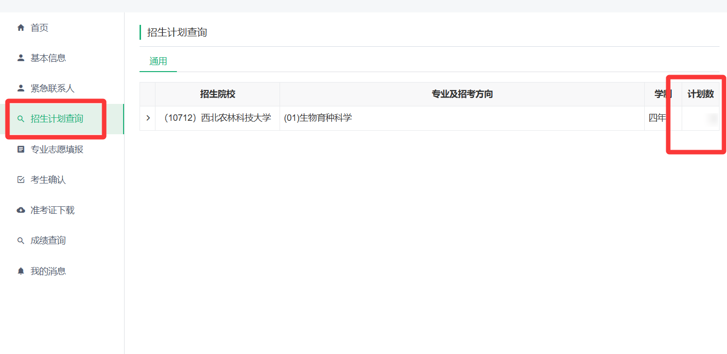3.左侧点击【招生计划查询】可以查看我校在某省的招生计划数。