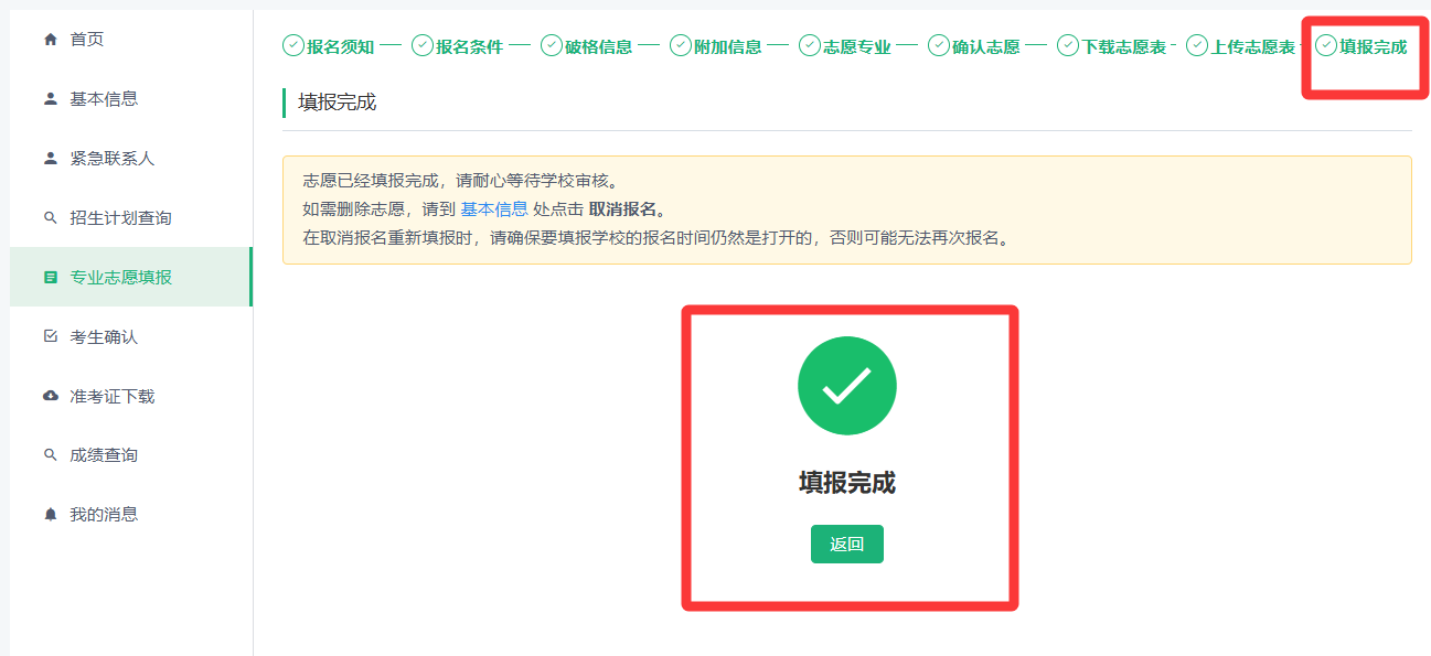 (5)完成上传后,即为填报完成。考生于6月10日—6月20日,登录强基计划报名平台确认是否参加校考。