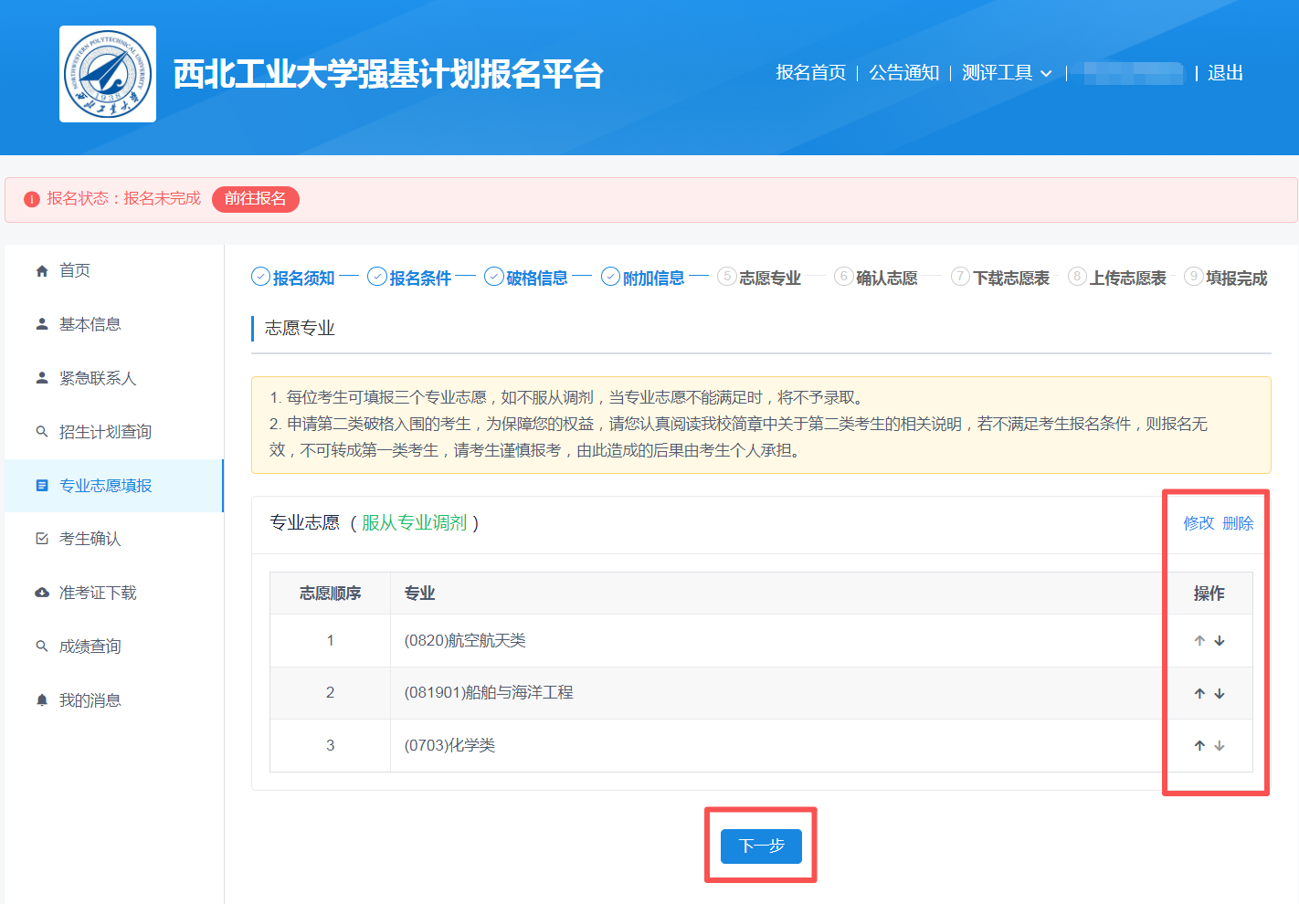 第六步:修改志愿