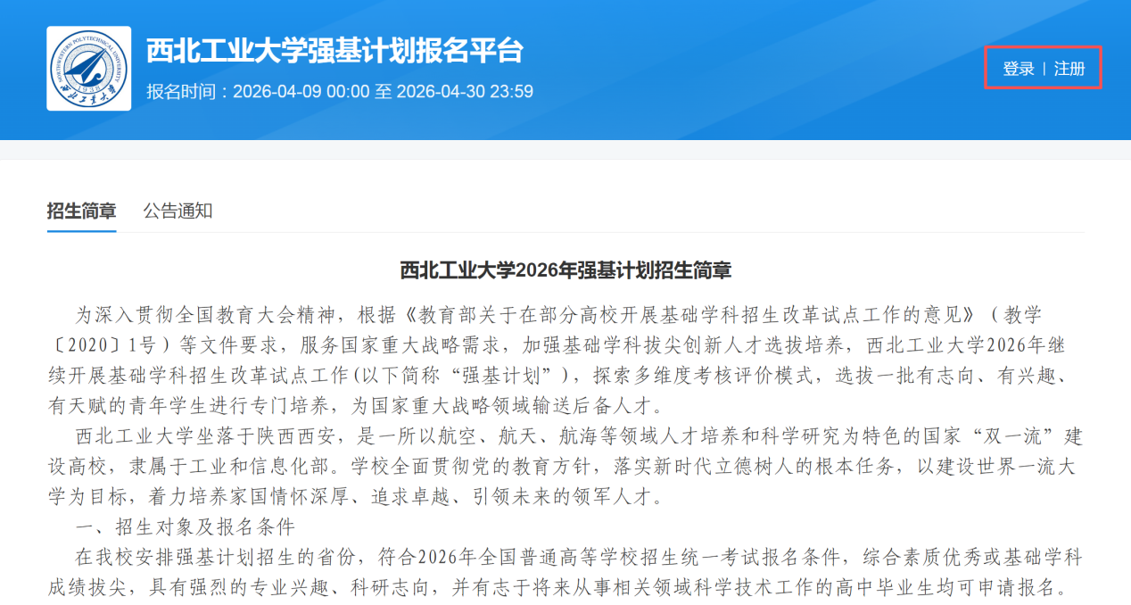 西北工业大学强基计划报名截止时间为2026年4月30日,报名时间比较紧凑,为了便于大家报名,特整理西北工业大学强基计划报名系统操作流程梳理内容,一起来看!