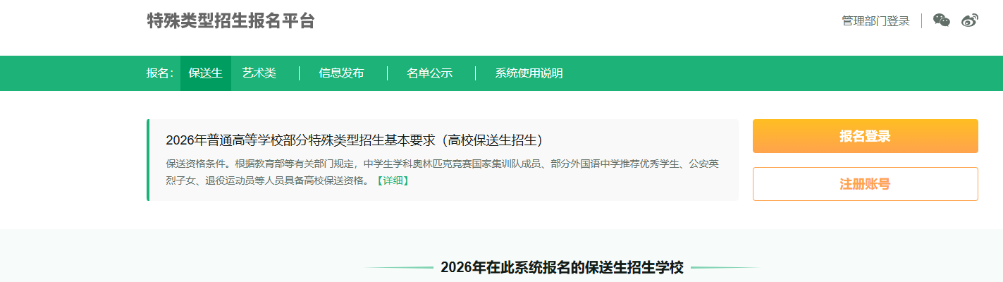 所有拟录取保送生须经教育部认定其具备保送生资格,并在教育部阳光高考平台(网址:http://gaokao.chsi.cn/)公示,否则我校将取消拟录取保送生资格。所有外语类保送生需参加生源省份高考报名。若生源省级招生考试机构有统一的保送生登记表,请按规定填写后寄至我校,我校将按照有关规定办理录取手续。保送生录取通知书将于高考录取期间寄发。