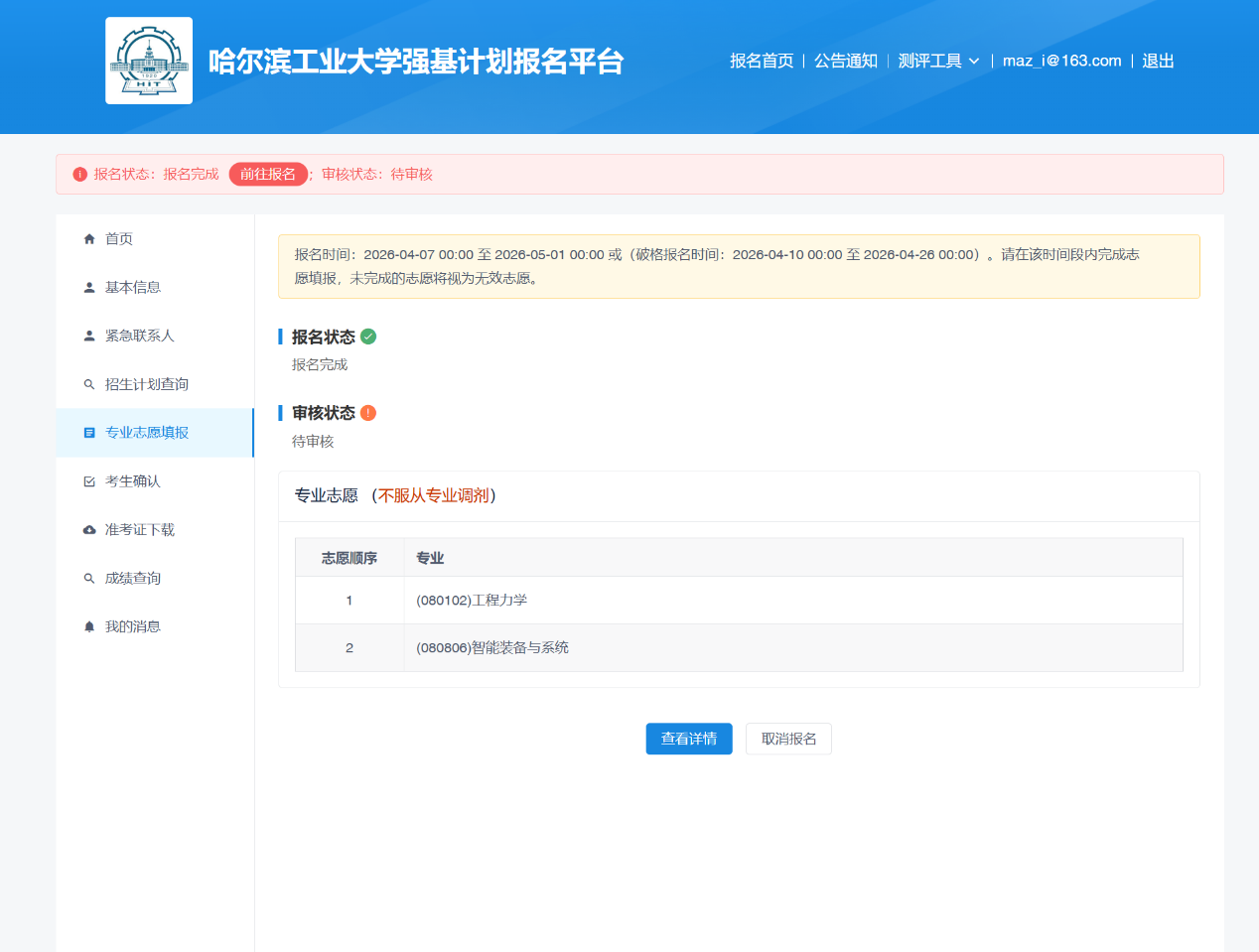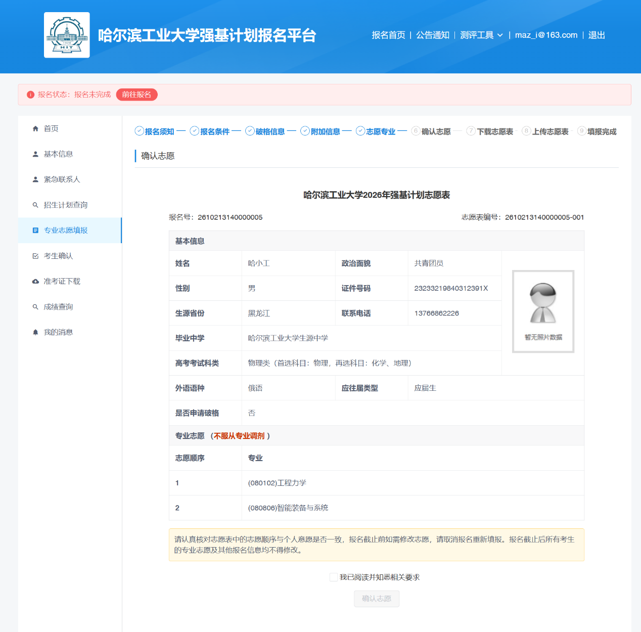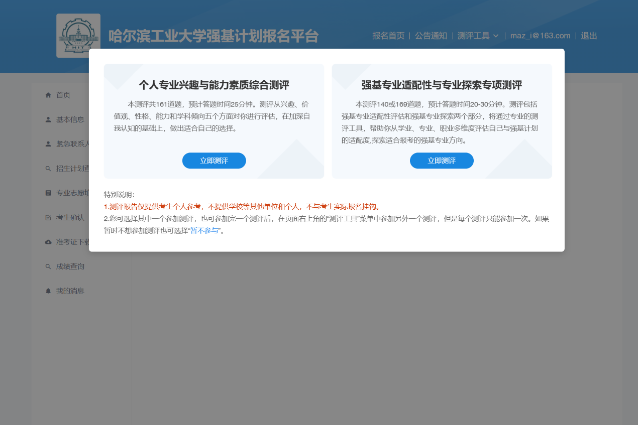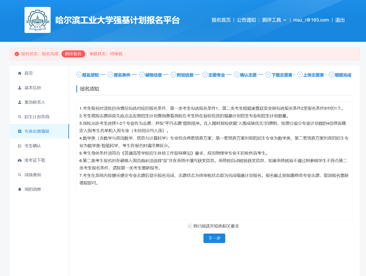 请各位考生在专业志愿填报前认真阅读报名须知:哈工大强基计划招生选拔规则和报名过程中注意事项。
