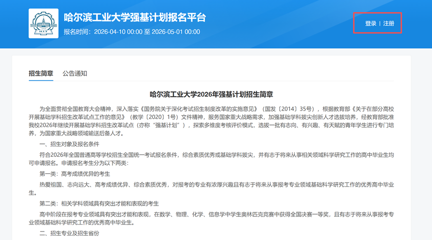 哈尔滨工业大学2026年强基计划报名流程全解析