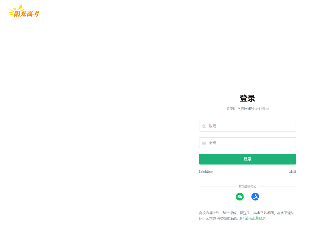 登录需要使用学信网账号,还没有学信网账号的同学需要点击注册,凭考生本人份证号和姓名注册一个账号。