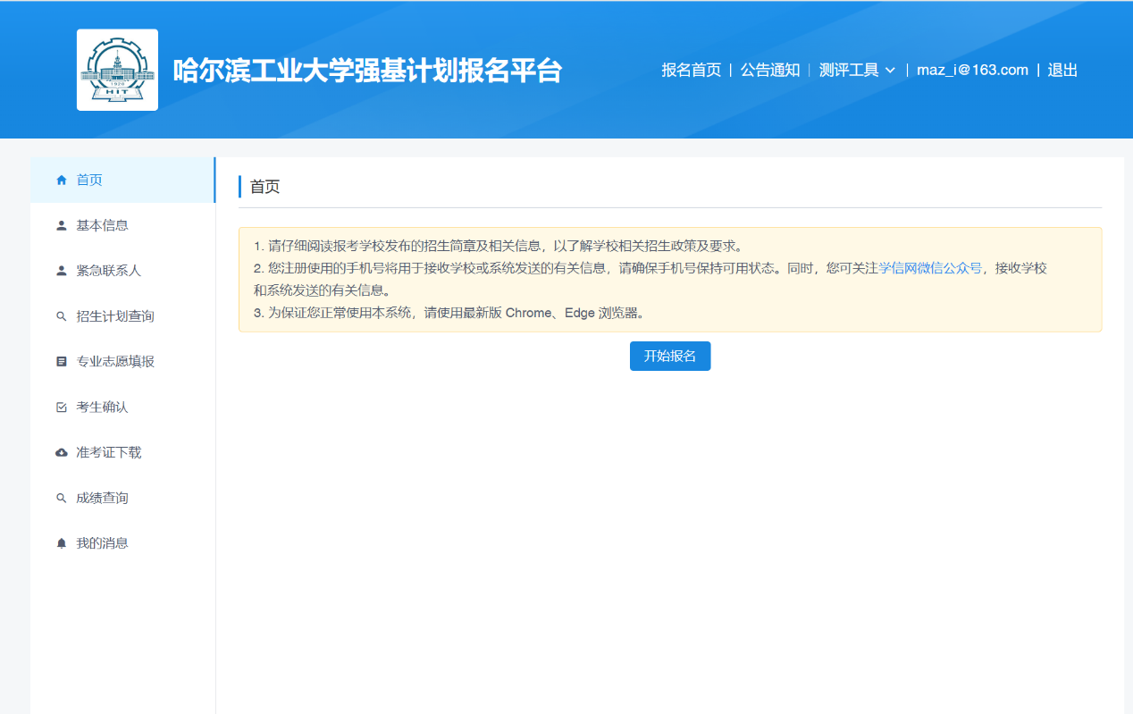 登录哈尔滨工业大学强基计划招生报名平台https://bm.chsi.com.cn/jcxkzs/sch/10213