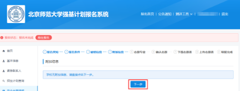 北京师范大学无需提交附加信息,直接点击下一步。