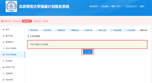 北京师范大学不需要上传申请表,点击“下一步”。