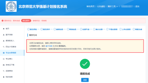 页面显示“填报完成”,即完成强基计划报名。