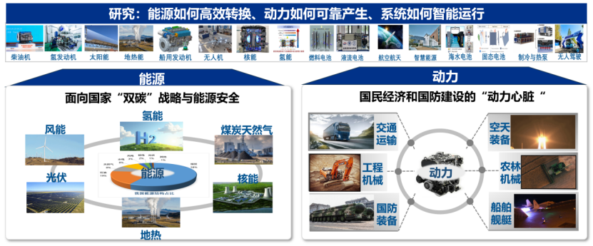 在研究方向上,学科已形成高效动力系统的燃烧与排放、净零碳动力的能源转化与利用、先进动力系统的集成与智能化、清洁能源发电、低碳综合能源系统等主要方向,并在氨氢发动机、混合动力、燃料电池、无人驾驶、太阳能多联供系统、热泵技术等交叉领域取得一系列成果。