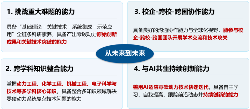 从能力要求看,强基培养重点指向四个方面:挑战重大难题的能力,跨学科整合能力,校企-跨校-跨国协作能力,与AI共生持续创新能力。其根本目标,是使学生具备面向复杂问题持续成长的能力。