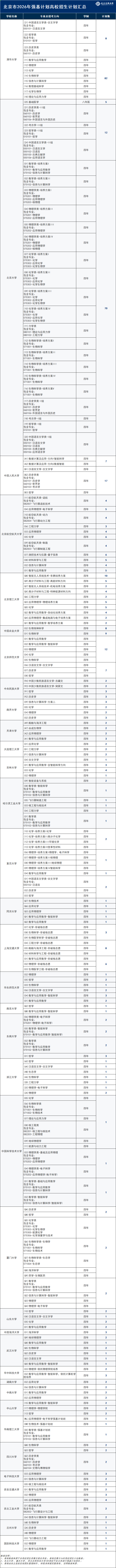 北京市2026年强基计划招生计划数汇总
