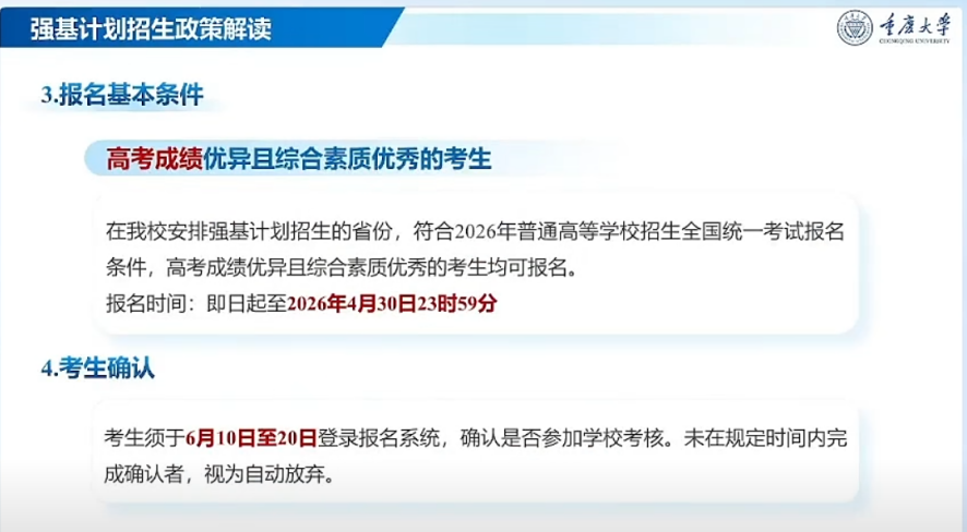 图源:2026重庆大学强基计划招生宣讲会截图