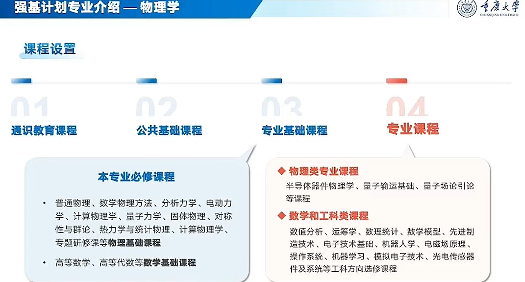 课程特色:包含半导体物理、量子输运等物理类课程,同时设置数值分析、机器人、光电传感器等数学与工科选修模块。