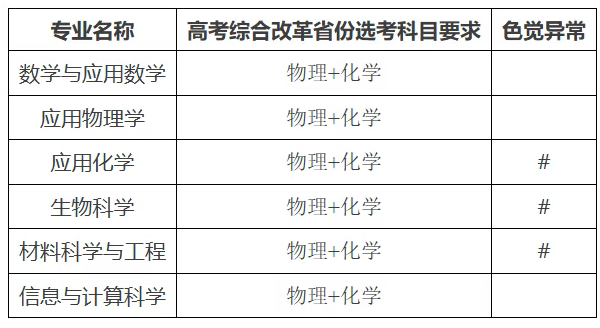 对比2025年无变化,标记“#”的专业不招收相关色觉异常(色盲、色弱、单色不能识别)考生。