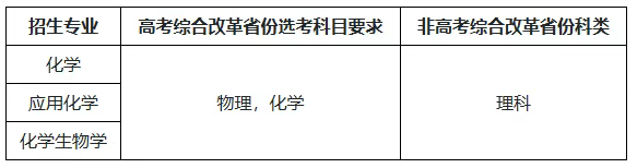 报考了多个专业的考生,将以“入围成绩优先”原则确定入围学校综合考核的唯一专业。入围成绩=化学科目高考成绩×2+其他科目高考成绩之和。