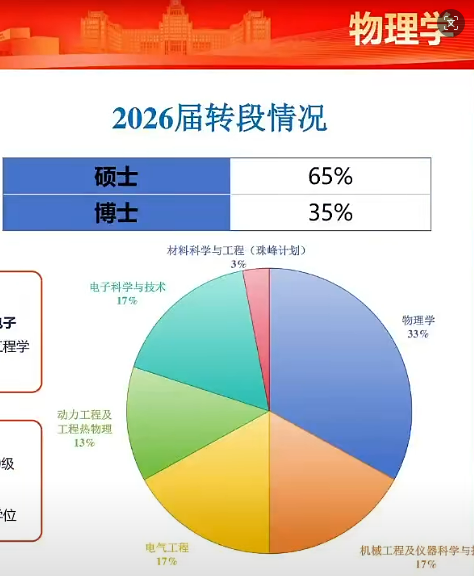 | 物理学 | 2025/2026届 | — | 35% | 65% | 物理33%、机械17%、电气17%、能动13%、电子/材料17% |