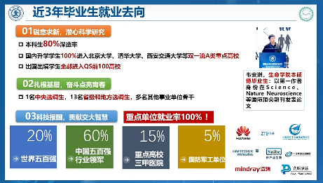 生物技术:本科生深造率80%,国内升学学生100%进入双一流A类高校,出国出境学生全部进入QS前100高校。转段方向含生物学、生物医学工程、基础医学。