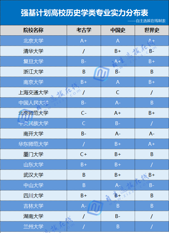 历史学中北大考古学为A+学科,复旦、北师大和华东师大历史学也发展出色。