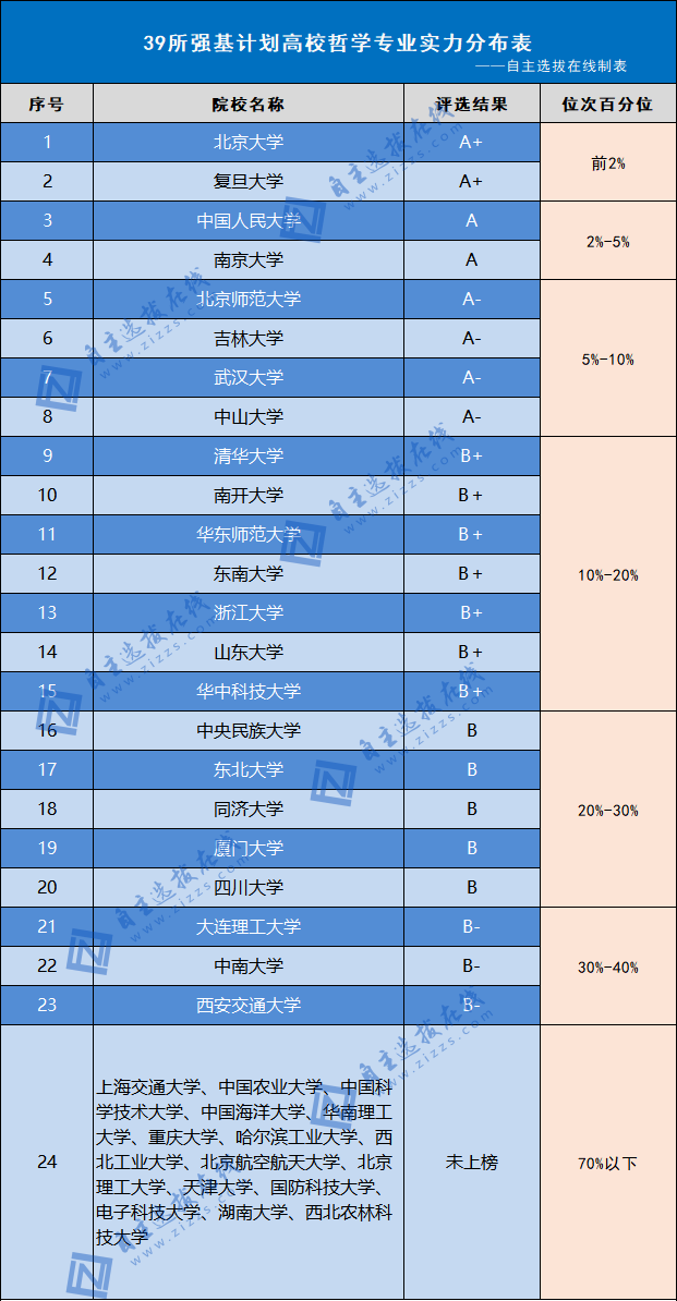 北大、复旦哲学均为A+学科,人大、南大哲学学科发展紧随其后。