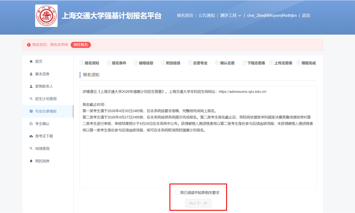 仔细阅读报名须知,并勾选【我已阅读并知悉相关要求】,点击【下一步】。