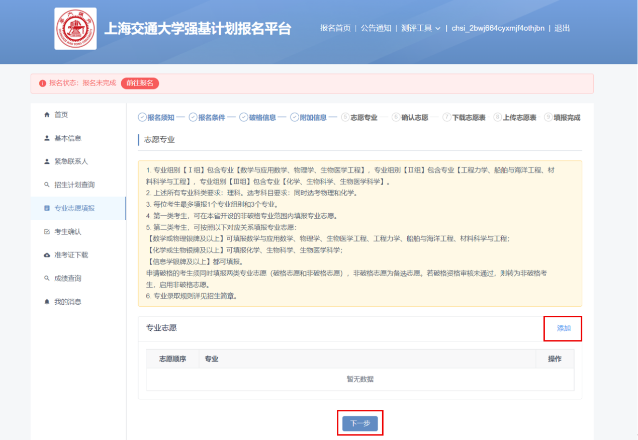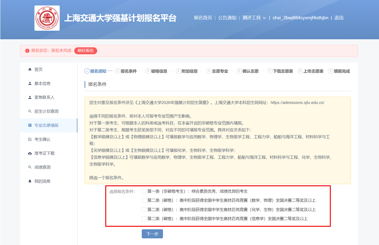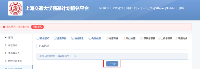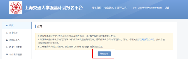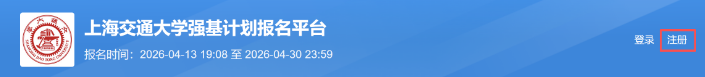 复制以上链接至浏览器,进入上海交通大学强基计划报名平台,点击右上角进行注册并登录。