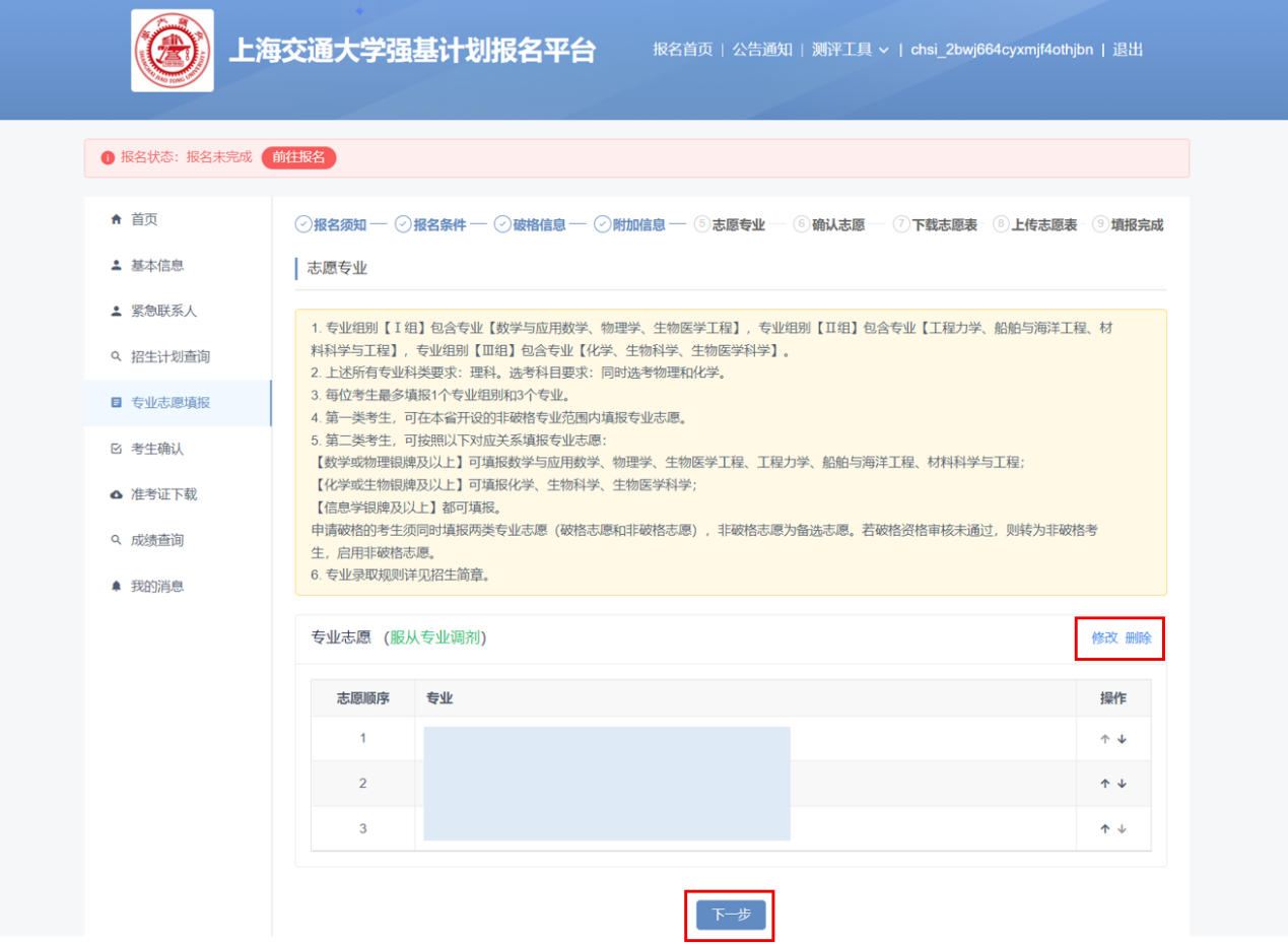 可点击右侧进行【修改或删除】,确认无误后,点击【下一步】。