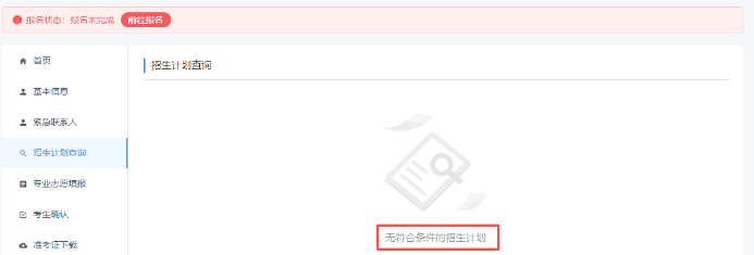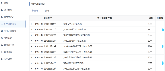点击左侧导航栏的【招生计划查询】,可查看本省份符合考生本人选考科目(或科类)的专业组的计划数。