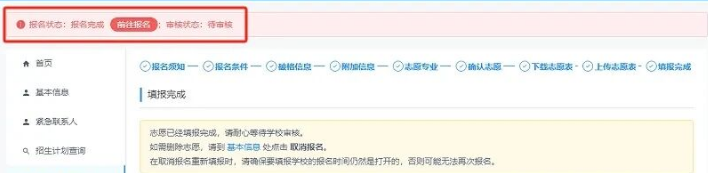 这是最直接的成功标志。通常在填报志愿、确认信息并点击提交后,系统首页或左上角会明确显示“报名完成”字样。