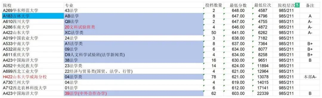 高考成绩在600-650分之间的考生拥有相对较大的选择空间,既可以冲刺一些顶尖高校的冷门专业,也可以稳妥选择一些211、双一流高校的热门专业。齐鲁家长圈整理山东高考600-650分,法学专业有哪些好大学可选,一起来看下吧~