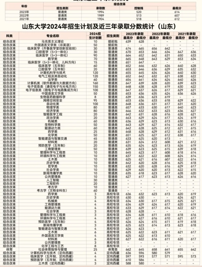 本期为大家整理了山东大学2024年本科招生计划及近三年录取情况,快来收藏查看。