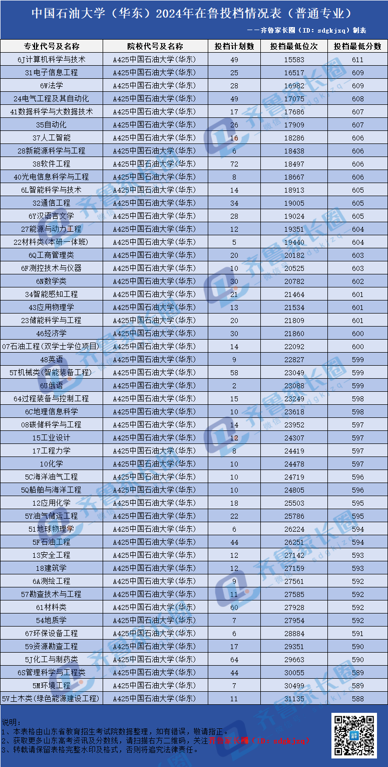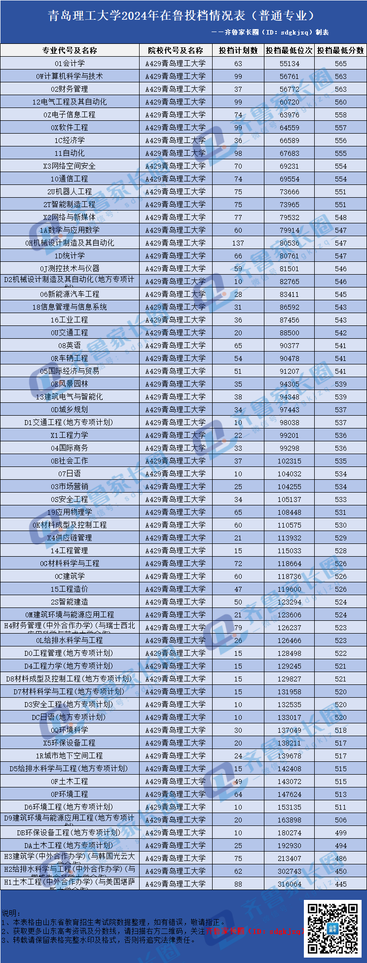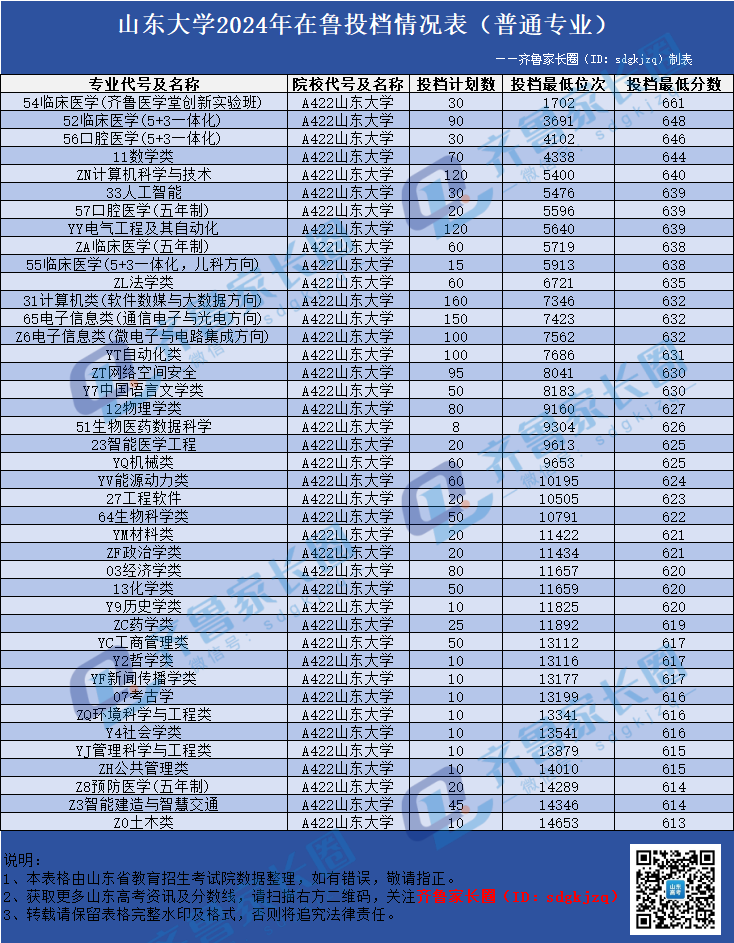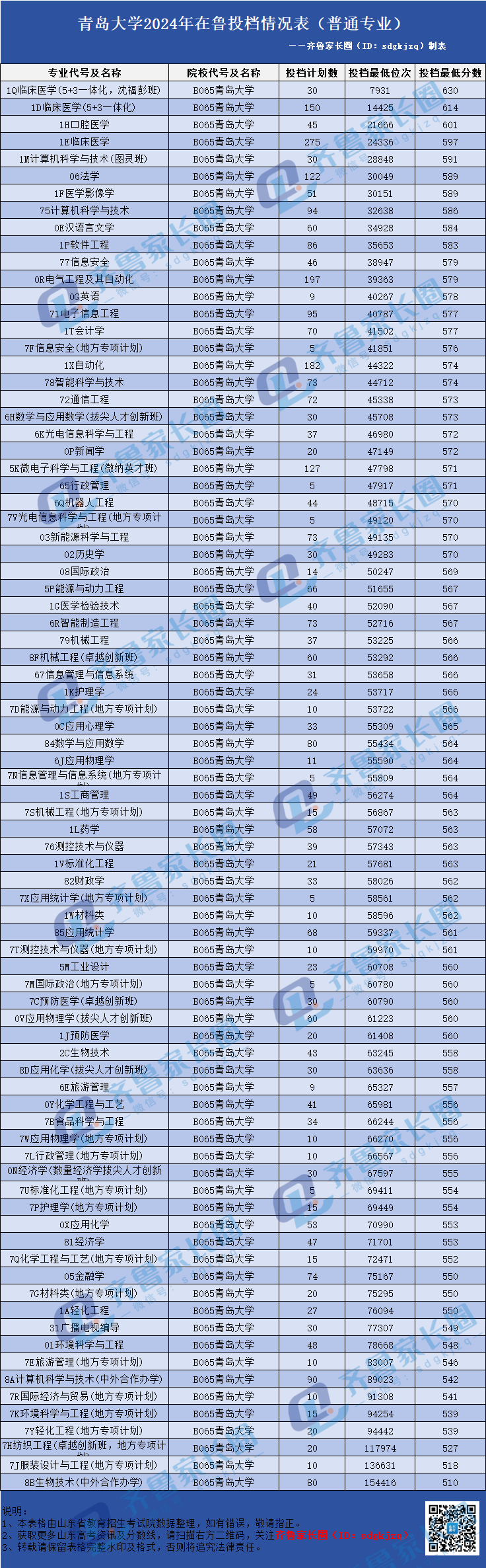 注:投档并不意味着最终录取,本文涉及到的部分高校还有剩余计划进入第二次志愿填报,本文数据来源《山东省2024年普通类常规批第1次志愿投档情况表》
