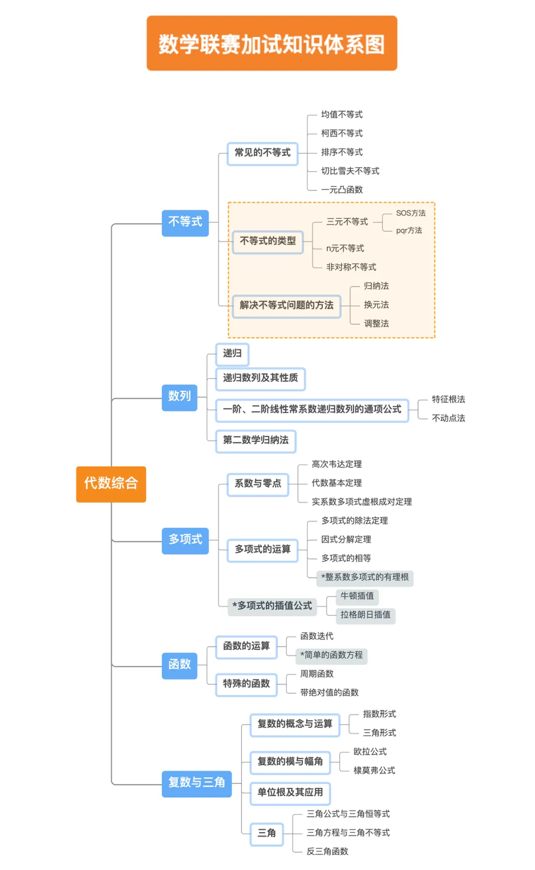 虽说数竞的知识点与难度绝大部分是高考不会涉及的,但并不意味着这是两条泾渭分明的路径。学生应该在课内知识掌握牢固、且学有余力的情况下,再开始数竞的学习,否则会得不偿失。