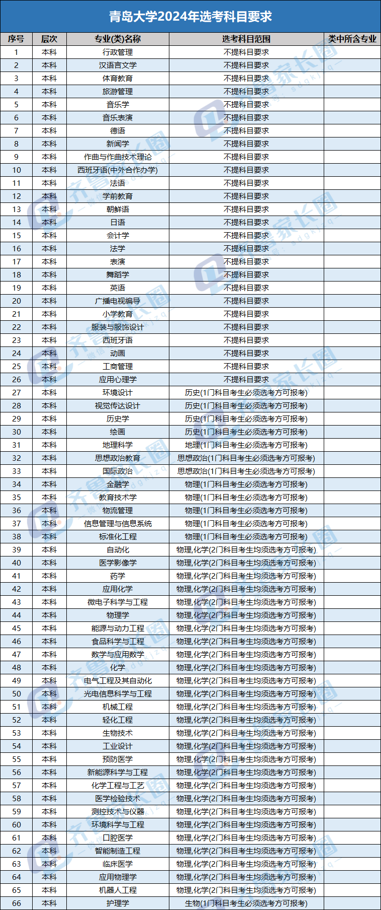 齐鲁家长圈(ID:sdgkjzq)最新整理了青岛大学各招生专业选考科目要求,山东考生重点参考。