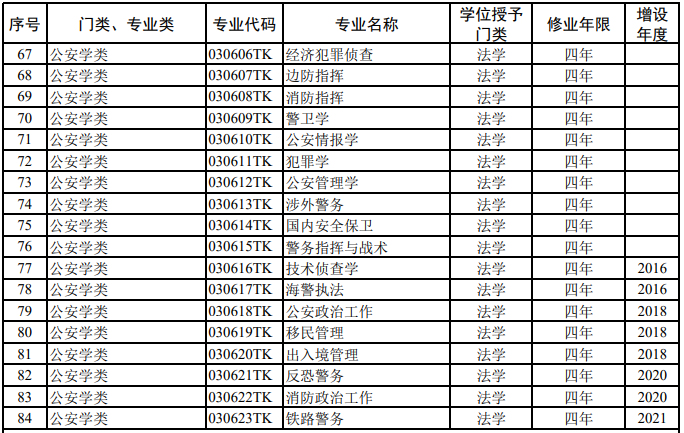 法学门类下有法学、政治学、社会学、民族学、马克思主义理论、公安学等几类。