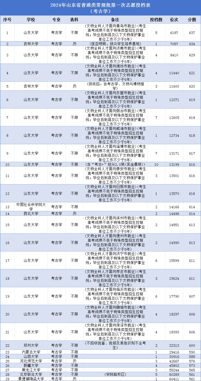 提醒考生的是,山东大学的考古学专业是学校首次实施的“山东省文物全科人才定向培养计划”,考生须通过山东省2024年普通高等学校招生报名且夏季高考成绩不低于我省普通类特殊类型招生控制线(2024年为521分);自愿承诺签订并履行定向培养协议,保证毕业后在定向就业单位工作不少于5年。招生计划60人,考生咨询报考踊跃,生源质量优秀,其中面向青岛就业投档线最高分为637分(省排名6221),录取最高分641分(省排名5198)。