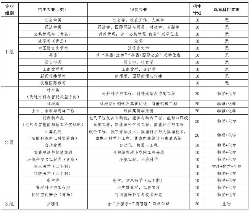 山大2025年在山东省综合评价招生计划300人,专业如下: