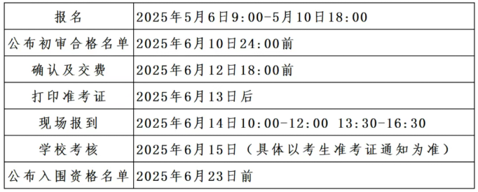 凡符合报考条件的考生需在2025年5月6日9:00-5月10日18:00分别登录报名系统和综合评价招生报名辅助系统,填报报名信息并上传报名材料,完成网上报名和缴纳报名费30元/人。