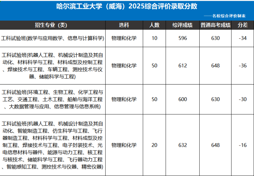 07哈工威2025年综评录取分数