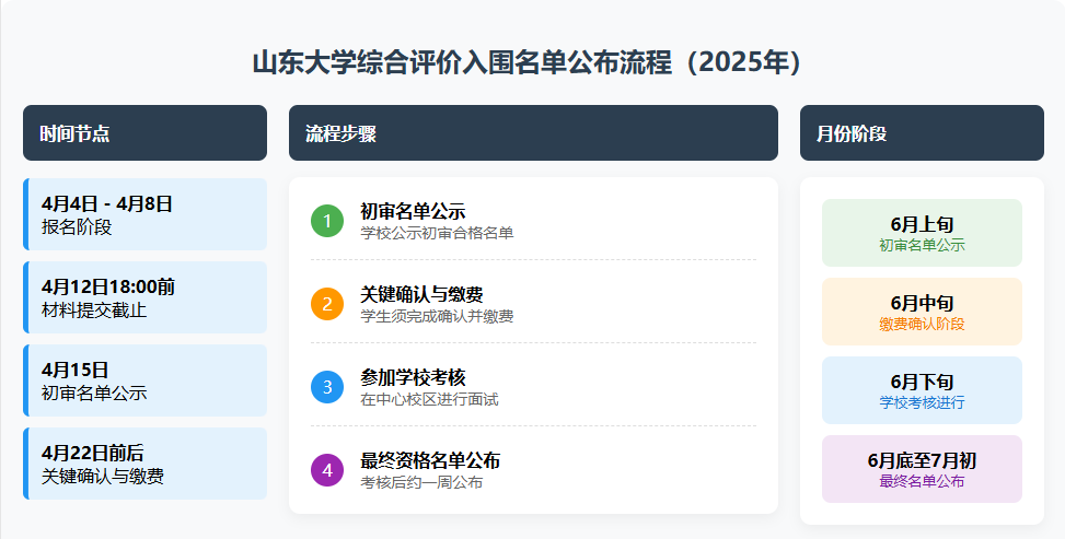 首先是“初审通过名单”,这决定了你能否进入校测环节。根据山东省教育厅的统一要求,所有试点高校须在6月11日前公示初审入围名单。山东大学在2025年严格执行了这一规定,于6月4日至6月8日在其本科招生网对初审合格考生名单进行了公示。这份名单的公布,意味着你成功通过了材料审核,拿到了参加校测的“入场券”。