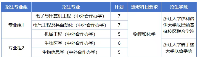 注:录取到电子与计算机工程(中外合作办学)、电气工程及其自动化(中外合作办学)、机械工程(中外合作办学)专业的学生入学后进入浙江大学海宁国际校区学习,在规定年限内达到所学专业毕业(学位)要求者,将获得浙江大学毕业证书、学士学位证书和美国伊利诺伊大学厄巴纳香槟校区学士学位证书,要求学生在读期间,不具有合作方学校所在国的移民身份;录取到生物医学(中外合作办学)、生物信息学(中外合作办学)专业的学生入学后进入浙江大学海宁国际校区学习,在规定年限内达到所学专业毕业(学位)要求者,将获得浙江大学毕业证书、学士学位证书和英国爱丁堡大学的学士学位证书。学费标准:16万元/人•学年。