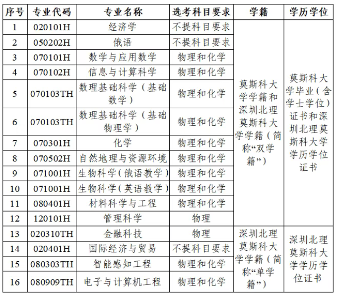 1.“双学籍”专业录取的学生将注册深圳北理莫斯科大学和莫斯科大学两校学籍,达到毕业要求者,颁发深圳北理莫斯科大学毕业证书;对符合学士学位授予条件的本科毕业生,授予学士学位并颁发学位证书。符合莫斯科大学毕业规定的本科毕业生,颁发莫斯科大学毕业(含学士学位)证书。“数理基础科学”专业分基础数学与基础物理学两个专业方向,前5-6个学期贯通培养,后2-3个学期分专业方向培养,达到毕业要求者,分别按专业方向颁发莫斯科大学基础数学专业毕业证书(含学士学位)或基础物理学专业毕业证书(含学士学位),以及深圳北理莫斯科大学数理基础科学专业毕业证书和理学学士学位证书。