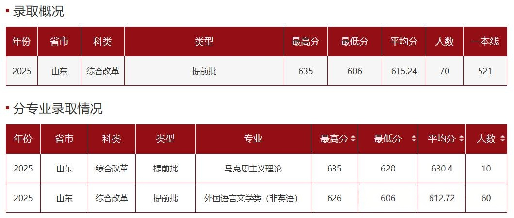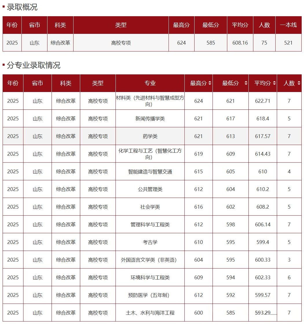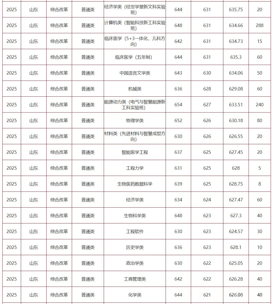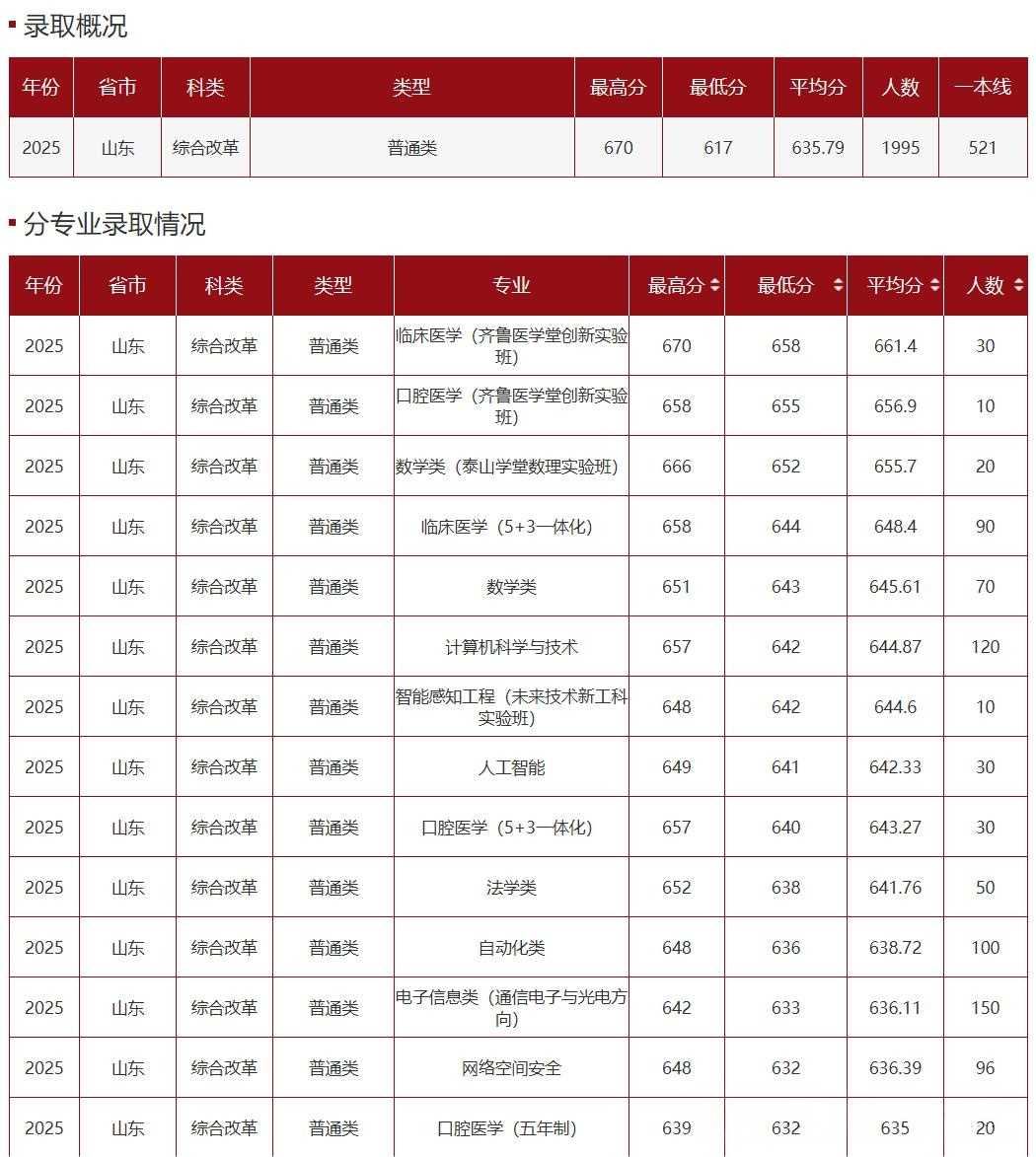 山东大学2025年录取专业及录取分数线汇总