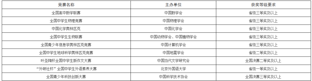 2.高中阶段在以下竞赛中获得至少一项奖项的。