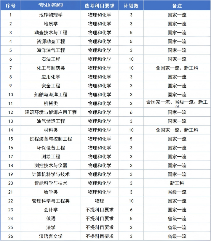 中国石油大学(华东)(总计划120人,不变)