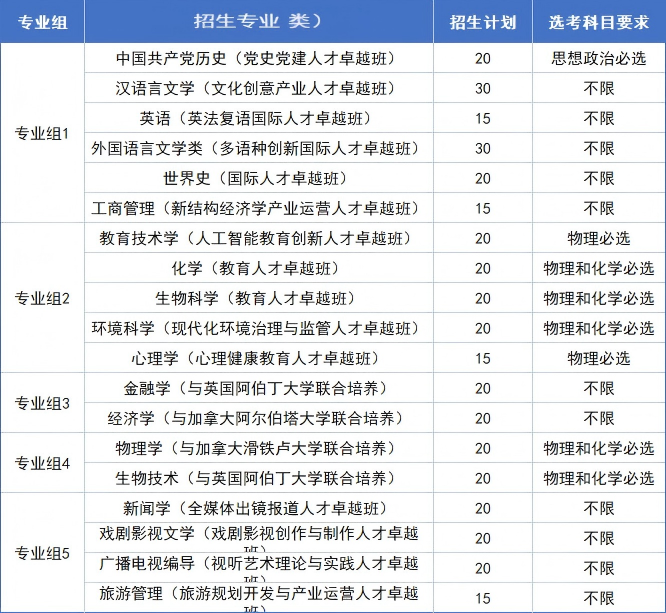 新增:化学(教育)20人;生物科学(教育)20人;心理学(教育)20人;经济学(中加)20人;物理学(中加)20人;生物技术(英阿)20人